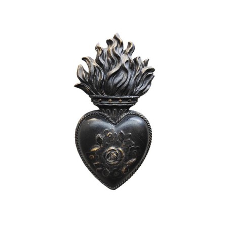 Décoration murale ex voto noir mat patiné- cœur sacré